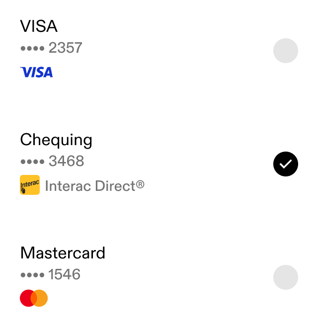 - Choose Your Default Payment Method: Select the eligible account you want to use for payments (e.g., chequing, savings).