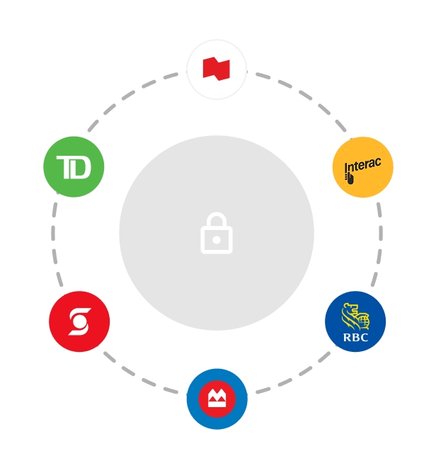We support chequing, savings, lines of credit and credit or debit cards affiliated with a participating financial institution.